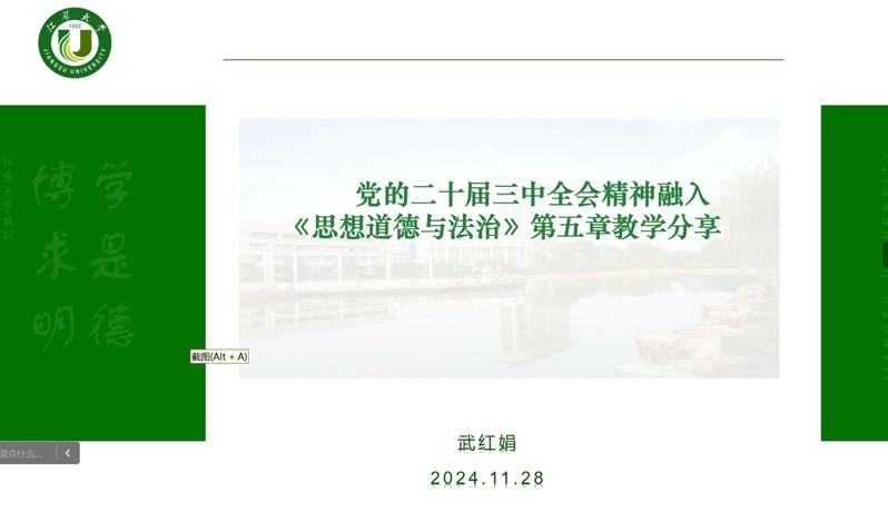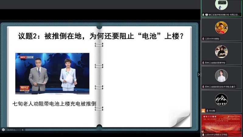 为持续深入学习贯彻党的二十届三中全会精神,推进大中小学思政课一体化建设走深走实,11月28日上午,由91自拍 、江苏大学91自拍 、苏州城市学院91自拍 、苏州高博职业学院91自拍 、苏州工业园区星湖学校、镇江实验学校官塘分校主办,91自拍 思想道德与法治教研室、江苏大学91自拍 思想道德与法治教研室、苏州城市学院91自拍 思想道德与法治教研室、苏州高博职业学院91自拍 思政教研室、苏州工业园区星湖学校、镇江实验学校官塘分校承办,西交利物浦大学91自拍 、苏州信息职业技术学院91自拍 、苏州卫生职业技术学院91自拍 、四川商务职业学院91自拍 、苏州工业园区职业技术学院91自拍 、苏州托普信息职业技术学院91自拍 、昆山登云科技职业学院91自拍 、贵州医科大学91自拍 德育教研室,上海应用技术大学91自拍 思想道德与法治教研室、新疆伊犁哈萨克自治州霍尔果斯市教育高质量发展研究中心、浙江机电职业技术大学91自拍 思想道德与法治教研室、苏州市叶圣陶中学校、苏州北美国际高级中学、苏州工业园区第一初级中学、苏州市平江中学校协办的集体备课会(第六期)以线上、线下相结合的方式成功举办。会议主办、承办、协办学校的“思想道德与法治”课专兼职教师和有关领导参加了此次备课会,会议由江苏大学91自拍 思想道德与法治教研室主任郭昭君主持。