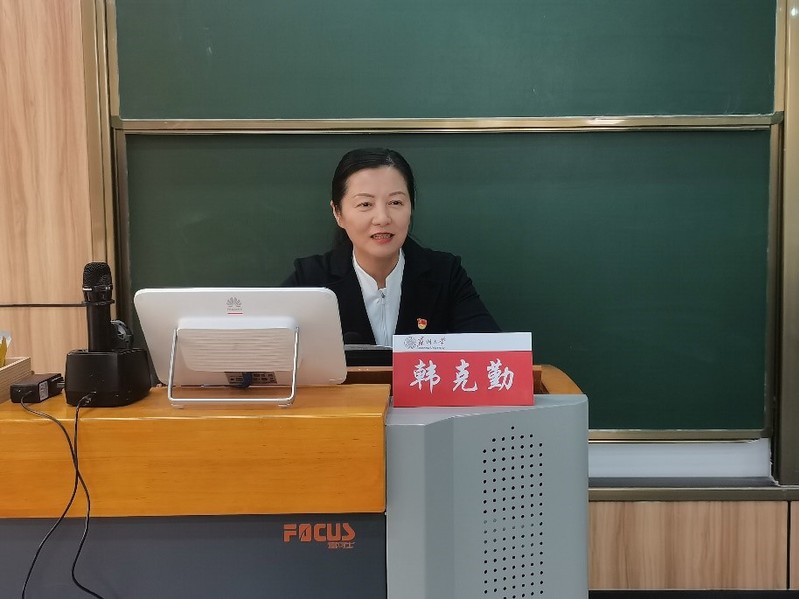韩克勤书记指出,“我是谁”不重要,但是代表谁、服务谁才是最重要的。正是秉承着这一理念,韩克勤书记除了认真做好本职工作,还积极参加社会公益活动,30多年无偿献血累计达上万毫升,成为“苏州红十字爱心形象大使”,用“热血”传递希望。最后,韩克勤书记分享了自己参加马拉松比赛的经历。她鼓励同学们要有挑战自我、超越极限、坚韧不拔、永不放弃的精神,在人生的马拉松赛道上“一路芬芳,精彩飞扬”。