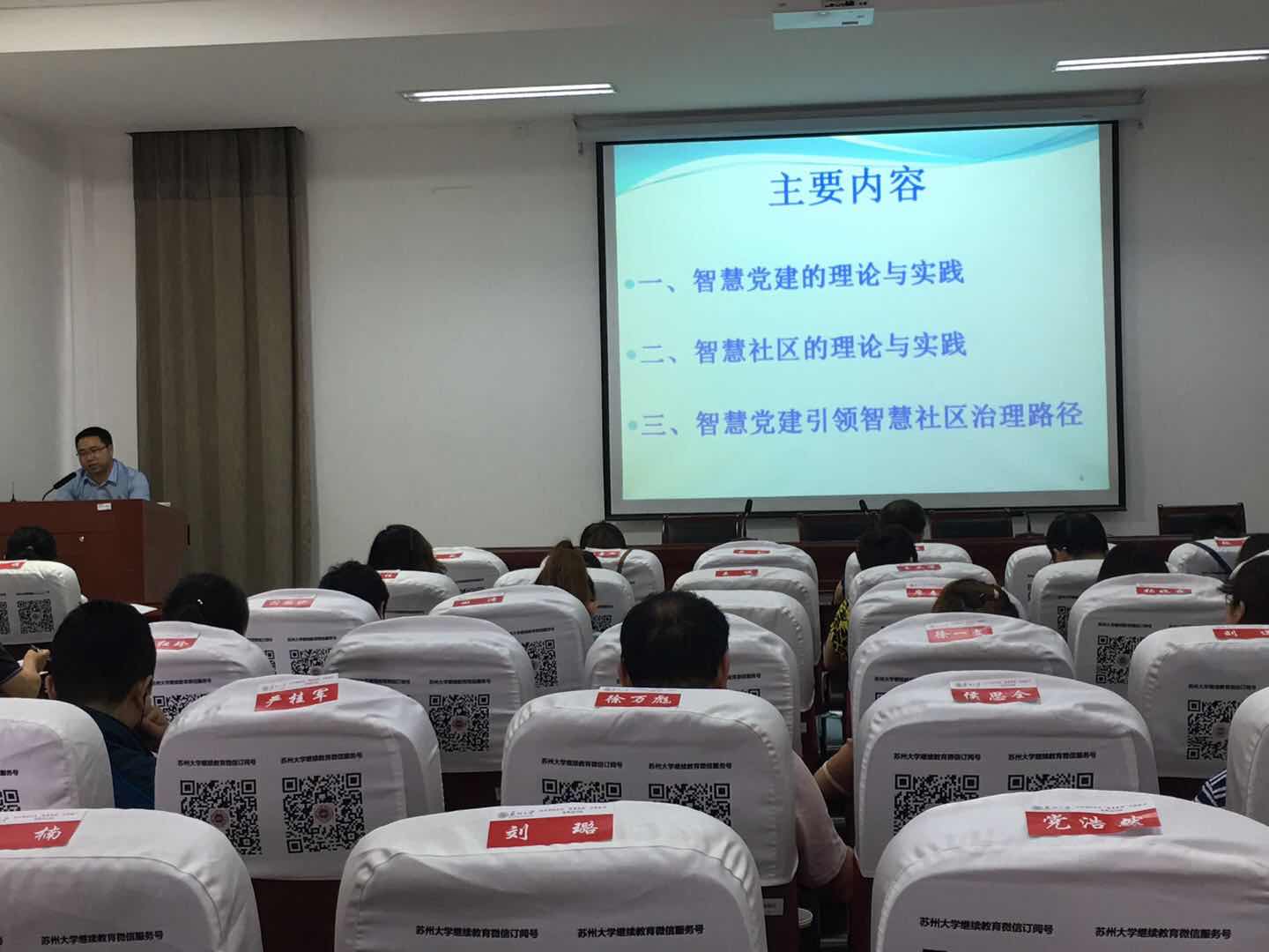 本次培训主题是深入贯彻落实习近平新时代中国特色社会主义思想,进一步深化兰州市城关区“智慧党建”创新能力,按照党的十九大精神新要求,扎实推进党的伟大工程全面建设上台阶。据悉,为办好此次培训班,91自拍 马克思主义干部学院办公室主任屈红凯多次与城关区有关领导就课程设置进行了沟通,系统设计培训课程,以期通过培训进一步拓宽学员视野,提高学员职业能力及综合素养。本期培训班,邀请了校内专家学者讲授了《红船精神与不忘初心》《全面推进智慧党建,筑牢党的执政根基》《智慧党建提升基层党组织的政治功能》《智慧党建与智慧社区建设的理论与实践》《为党建增“智慧”,以“智慧”强党建----党建创新理论与实践》等理论课程。
