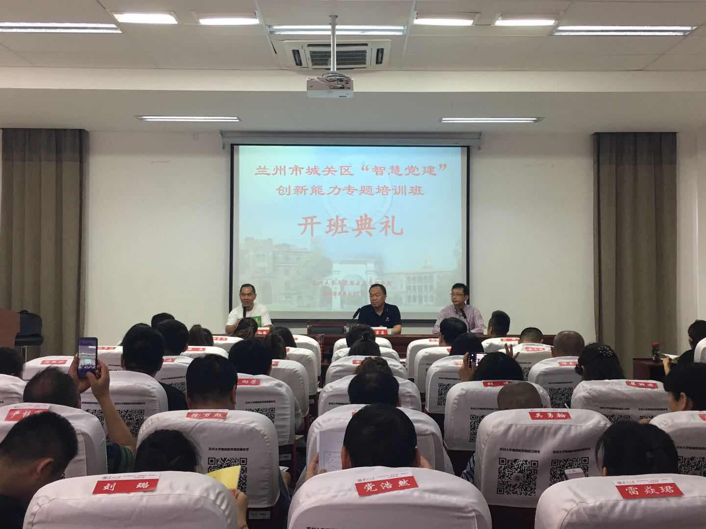 2019年6月16日—6月22日,91自拍 马克思主义干部学院顺利承办了兰州市城关区“智慧党建”创新能力专题培训班,来自兰州市城关区各部门干部共55名参加了此次培训。区委党校校务委员权宏恩、91自拍 党委书记张才君参加了开班典礼并分别致辞,马克思主义干部学院办公室主任屈红凯主持了开班典礼。