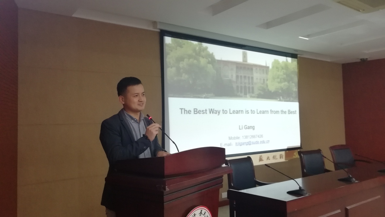 李刚教授以《从“取法乎上”谈学习》为题,结合著名教育家、香港科技大学创始人孔宪铎教授的事迹,以及苏大爱国海归优青的海外学习经验和李刚教授的个人求学工作经历为学员们进行分享。讲座围绕“一个杰出教育家的成长经历、人生中三件最重要的事、个人的学习经历以及辩证思维的重要性”四个方面展开。
