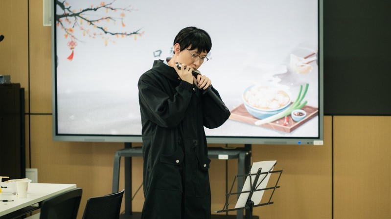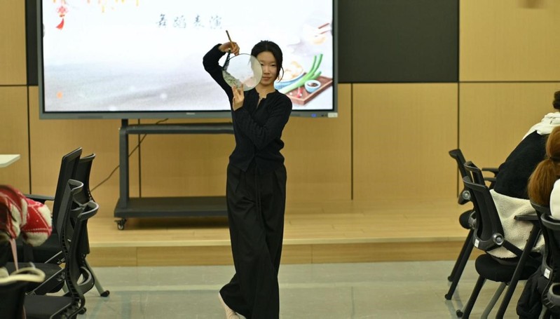 节目精彩纷呈,文化韵味十足。博士生刘一凯的口琴表演悠扬动听,2024级本科班委的朗诵表演情感饱满,2023级本科生邓舒尹的舞蹈《故梦》则展现了江南的柔美与冬至的热烈,赢得了阵阵掌声。这些节目不仅展现了同学们的才艺与风采,更诠释了冬至的文化内涵与节日的韵味。