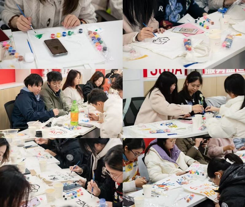 在手工制作环节,同学们发挥创意与想象力,在白色帆布袋上绘制出精美的图案,制作出独一无二的冬至纪念品。这些作品寄托了同学们的美好愿景与祝福,彰显了他们的匠心与创意。