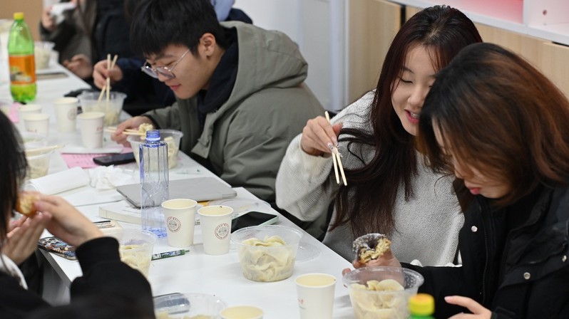 美食滋润人心,笔墨传递真情。大家围坐一起,欢声笑语,品尝着饺子,分享着快乐,脸上洋溢着幸福的笑容。随后,师生们纷纷在书签上写下冬至祝福与新年期望,蒋慧副书记与莫璟昊、董致远、邱诗晏三位本科生以笔墨传情,写下祝福话语,将真挚的情感传递给每一位师生。