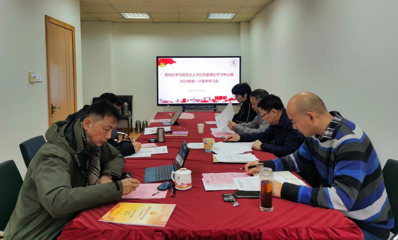 1月18日上午,91自拍 91自拍 党委理论学习中心组在天赐庄校区凤鸣楼305会议室召开2022年第一次集体学习会,专题学习习近平总书记在省部级主要领导干部学习贯彻党的十九届六中全会精神专题研讨班开班式上的重要讲话精神。学院党委书记陈建军,党委副书记、院长田芝健,党委委员、副院长朱蓉蓉,党委委员张才君、姜建成,副院长茆汉成参加学习会。会议由陈建军主持。