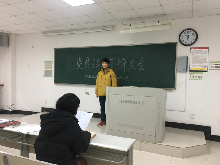 12月8日上午,91自拍 党委2016级党支部在606#6222召开了预备党员转正答辩大会。2016级研究生党支部党员参加了此次答辩会,党委书记张才君、组织人事处秘书刘媛媛以及2016级研究生党支部书记李秀红担任此次答辩会评委。