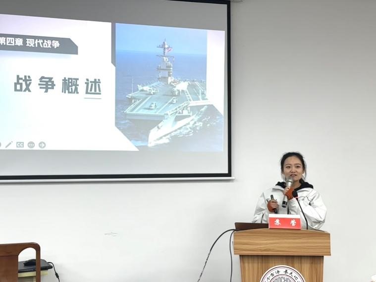 苏州经贸职业技术学院苏莹老师以《战争概述》为题,坚持以生为本,从学生视角出发,将课程内容与生活实际紧密联系起来,在抽象的理论知识和具体的生活实际之间搭建一座桥梁,为军事理论课程的教学创新提供了有益的借鉴。