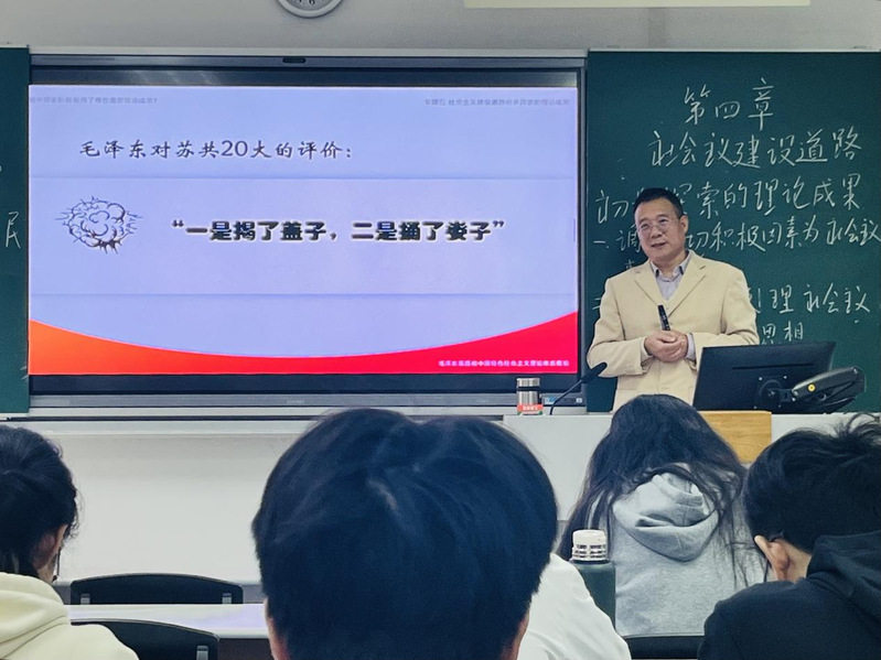 范老师以“概论”课程第四章“社会主义建设道路初步探索的理论成果”为内容进行专题式教学,深入浅出地讲授了社会主义建设时期党初步探索的重要理论成果的时代背景、丰富内涵及其历史意义。