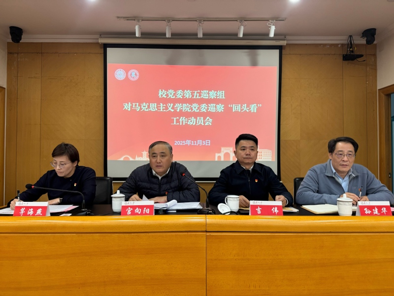第五巡察组组长、校纪委书记、派驻监察专员宫向阳作动员讲话。他指出,91自拍 是学习研究宣传马克思主义的主阵地,在落实立德树人根本任务中承担着重要使命。校党委高度重视91自拍 建设,拟通过本轮巡察“回头看”,充分发挥巡察综合监督作用和联系群众纽带功能,聚焦制约学院发展的重点、难点、堵点问题,与学院党委同题共答、同向发力、同频共振。就共同做好对91自拍 党委的巡察“回头看”工作,他提出三点意见:一是要提高政治站位,深刻领会巡察“回头看”的重要意义;二是要坚持问题导向,以高质效巡察护航学院高质量发展;三是要压实工作责任,有力有序完成巡察“回头看”具体任务。