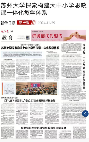 倾力打造特色“行走的思政课”,被新华日报、江苏教育电视台等主流媒体报道。师生代表参加“博物馆里的大思政课”,被人民网、中国新闻网、中国社会科学网、博物馆头条等主流媒体深度报道。
