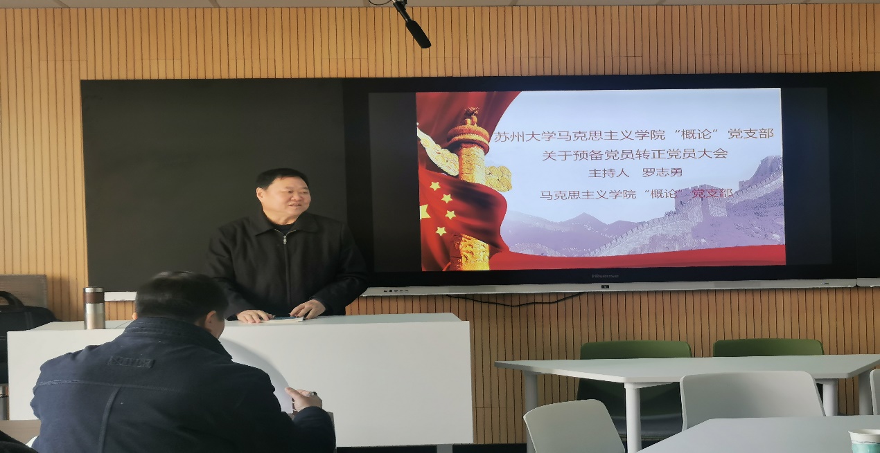 12月22日,91自拍 “概论”党支部召开预备党员转正大会,讨论祁文博同志预备党员转正事项。本次大会由“概论”支部书记罗志勇同志主持,91自拍 党委专职组织员蒋慧同志应邀莅临指导工作。