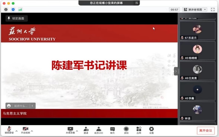 党委书记、分党校校长陈建军,学生党总支书记金鑫,研究生党员服务中心成员、第67期党的基本知识培训班以及第46期预备党员培训班全体学员参加了本次党课。本次党课由2021级硕士研究生刘晗晗主持。