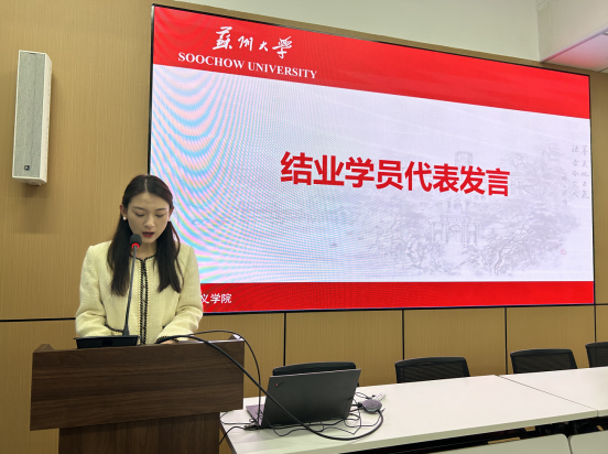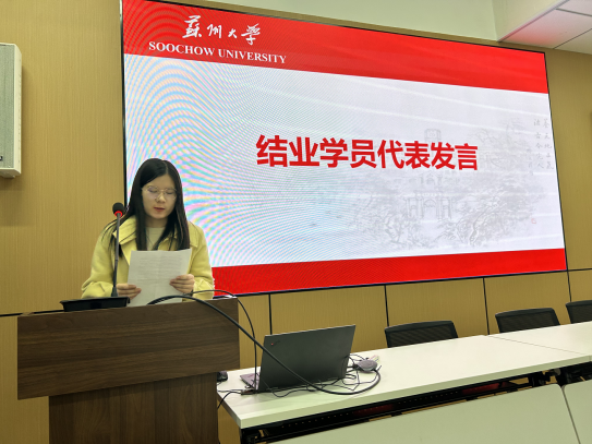2021级硕士生王晗于和2022级本科生作为结业学员代表发言。王晗于同学表示要不断提高思想道德水平,时刻以共产党员的标准严格要求自己,在平时的学习和生活中,起到先锋模范的带头作用,用实际行动和优异成绩接受党的检验和考察。宋怡然同学表示在学习过程中,更加清晰地认识到了共产党员的责任和使命,深刻感受到了党组织对于党员的培养和教育,今后将不断提高思想觉悟,始终保持对党和人民的忠诚。