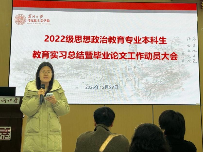 最后,朱蓉蓉副院长作总结讲话。她对同学们顺利完成实习表示祝贺,并鼓励大家及时总结反思,在实践积累中持续成长。针对即将开展的毕业论文工作,她强调,全体同学务必恪守学术规范,积极主动与导师保持沟通,以严谨的态度投入研究,用扎实丰硕的成果为本科阶段学习生涯画上圆满句号。
