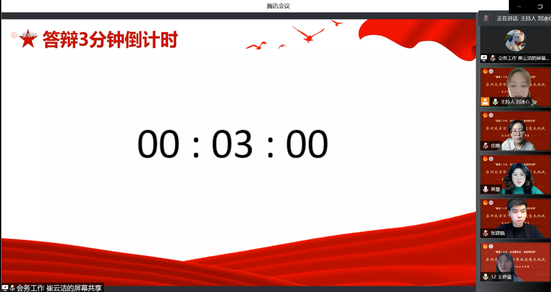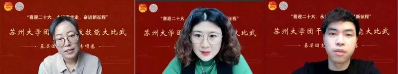 4月24日,“党史和团务知识基础理论测试”环节于线上顺利进行。测试分为线上答题和现场答辩两个环节。在现场答辩环节,91自拍 团委副书记徐娜、91自拍 专职组织员蒋慧、91自拍 青年教师张建晓作为评委,针对主题团课内容和基础理论知识等进行提问,对选手们的政治理论素养和团务工作能力进行考察。