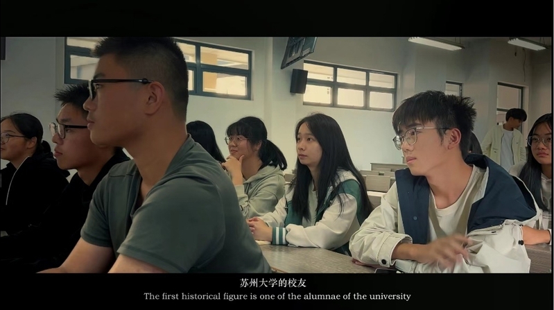 影片开始,在教室,白洁与“乐于泓”相遇苏大,同窗学习;影片结尾,在丁香树前,白洁感受到校友丁香烈士的精神与力量,不禁潸然泪下……影片以白洁与丁香两位人物的跨时空呼应,表达了人们对于革命先烈的缅怀以及新时代青年继承先烈遗志、担当历史使命的宏大志向。