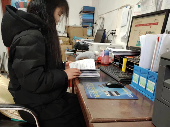 图为:刑梦姿在乡村农村办公室参加社会实践