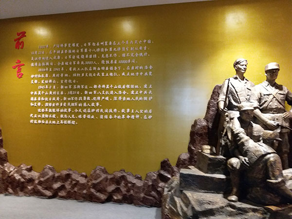 砂村文化礼堂二楼的新四军纪念馆,详细地记录着抗战时期砂村军民抗日用的英勇事迹。为再现历史场景,纪念馆里不仅搜集了大量抗日战争时期的实物,还配有大屏幕投影等现代媒体设备。