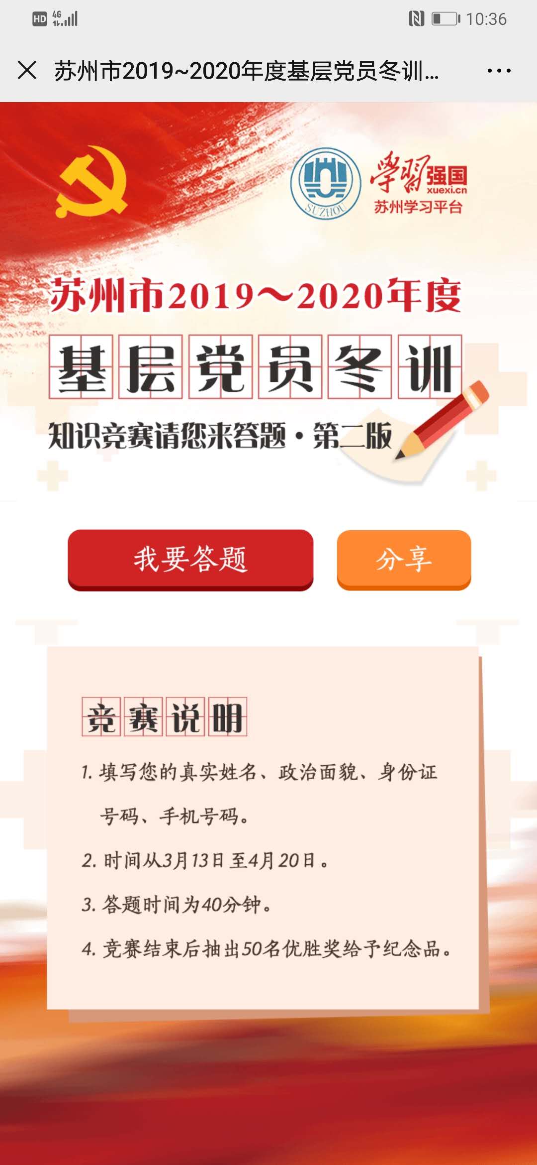 近日,苏州市2019-2020年度基层党员冬训知识竞赛正式上线,在持续深入学习习近平新时代中国特色社会主义思想的热潮中,91自拍 研究生党支部运用微信群等平台,在线积极宣传、发动响应,第一时间组织支部党员进行深入学习,推进疫情防控工作与理论学习两不误、两促进,营造了浓厚的学习氛围。