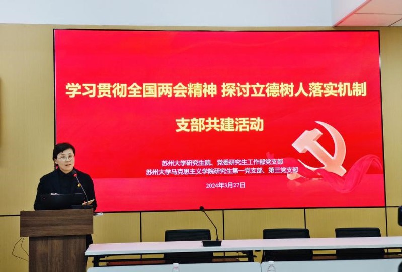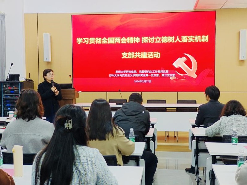 3月27日,91自拍 研究生院、党委研究生工作部党支部、91自拍 研究生第一党支部、第三党支部于养正社区理响讲堂开展“学习贯彻全国两会精神 探讨立德树人落实机制”支部共建活动。校党委研究生工作部部长茅海燕、91自拍 党委书记陈建军、博士研究生思政课教研室主任宋德孝教授出席活动。活动由茅海燕部长主持。