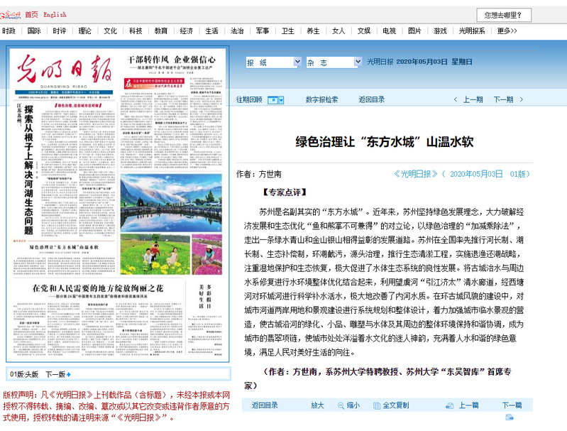 方世南:绿色治理让“东方水城”山温水软