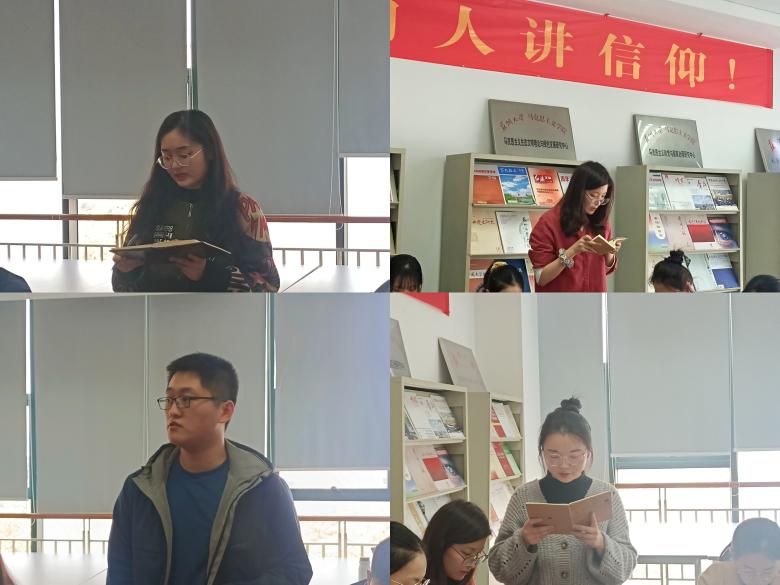 党课培训学员代表张雪薇、倪佳佳、翟瑞强、王思源分别结合实际讲述了自己对党的认识。张雪薇表示,今年是建党一百周年,在这个特殊的历史时期接受党课培训,意义非凡。作为一名马克思主义专业的学生,我们应该比其他专业的学生更自觉、更主动积极、更多地锤炼自己,带着理想、带着使命、带着目标来完成接下来的理论与实践学习。倪佳佳表示,在最近的一段时间里,她积极参加了学校和学院组织的学习党史的活动,同时还参与了全国大学生的党史知识云竞答,正是在这样的氛围中,我们更能够感受到党的伟大,也更能够坚信自己入党的决心。翟瑞强表达了他想要入党的动机——理想。他叙述了自己对中西方扶贫的认识。我国的精准扶贫区别于西方,我们强调的是“扶贫先扶志”,是“授人以鱼不如授人以渔”,也就是中国共产党和共产党人一直坚持的理想——我们要做人,不要做被压迫的牛马。王思源表示,现在我们国家的建设进入了一个崭新的阶段,需要大批有志青年为之奋斗,才能使真正强盛。作为马院的一名学生,她有决心向党靠拢,追求进步,争取早日成为一名光荣的共产党员在时代前进的大潮中贡献出自己的一份力量。