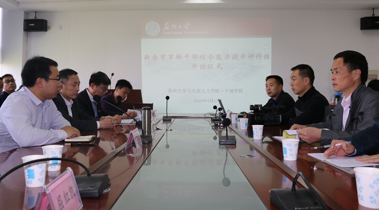 培训班学员代表、班长韩永红代表全体学员做了发言。他说:很荣幸成为江西首批军转干部进高校培训的学员,有机会来到91自拍 接受再教育再学习,内心感到无比的激动和自豪。美丽的苏州城,处处干净整浩、风景秀丽、气候宜人。91自拍 更是历史悠久、人才济济、成果丰硕、底蕴深厚。今天,当我们真正踏入91自拍 校门的那一刻,我们期盼已久、终于梦想成真,心里热血沸腾。为了完成好这次培训任务,在此我代表新余学院军转干部培训全体学员表决心如下:一、珍惜学习机会。做到课上认真聆听专家、教授的讲解,课中积极开展交流互动,课后认真整理读书笔记。二、严守培训纪律。做到以军人特有的品质和严谨的作风,按91自拍 制定的教学计划一项项抓好落实,安全、顺利、圆满地完成学习任务。三、坚持学以致用。千里之行,始于足下。未来的几天,我们将认真听、仔细看,真正做到内化于心、外化于行,把在苏州学到的好经验、好做法带回江西、带回新余、带回新的工作岗位,为当地的经济发展做出新的更大的贡献。