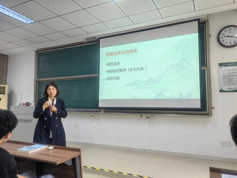 本次期中教学检查公开课由杜佩红老师主讲《中国近现代史纲要》教材第五章中国革命的新道路内容。杜老师通过智慧树平台发布问题“什么是根据地形成的重要标志”,在引导学生充分讨论基础上,详细讲述以井冈山革命根据地为代表的农村根据地形成过程,深入分析农村包围城市、武装夺取政权中国革命新道路的主要内容和历史意义。课程讲授重点突出、史料丰富,注重问题导向,启发引导学生深度思考,激发学生学习积极性和主动性,课堂氛围生动活泼,教学效果较好。