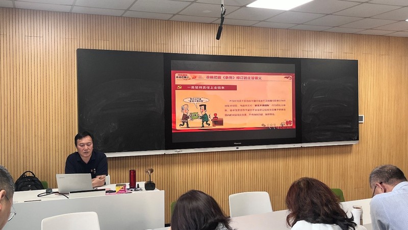 根据学院党委的统一部署和要求,教师第二党支部书记罗志勇围绕新修订的《中国共产党纪律处分条例》为师生党员做了一场党纪学习教育专题辅导报告。罗志勇书记结合党员日常生活实际,用生动的案例,从“深刻认识新修订《条例》的重要意义”“准确把握《条例》修订的主旨要义”及“抓好《条例》的贯彻执行 以严明的纪律推进党的自我革命”三个方面,对新修订的《条例》作了全面、深入、系统的解读,要求各位师生党员切实以学纪、知纪、明纪、守纪的优良纪律作风,推进基层党建高质量发展。