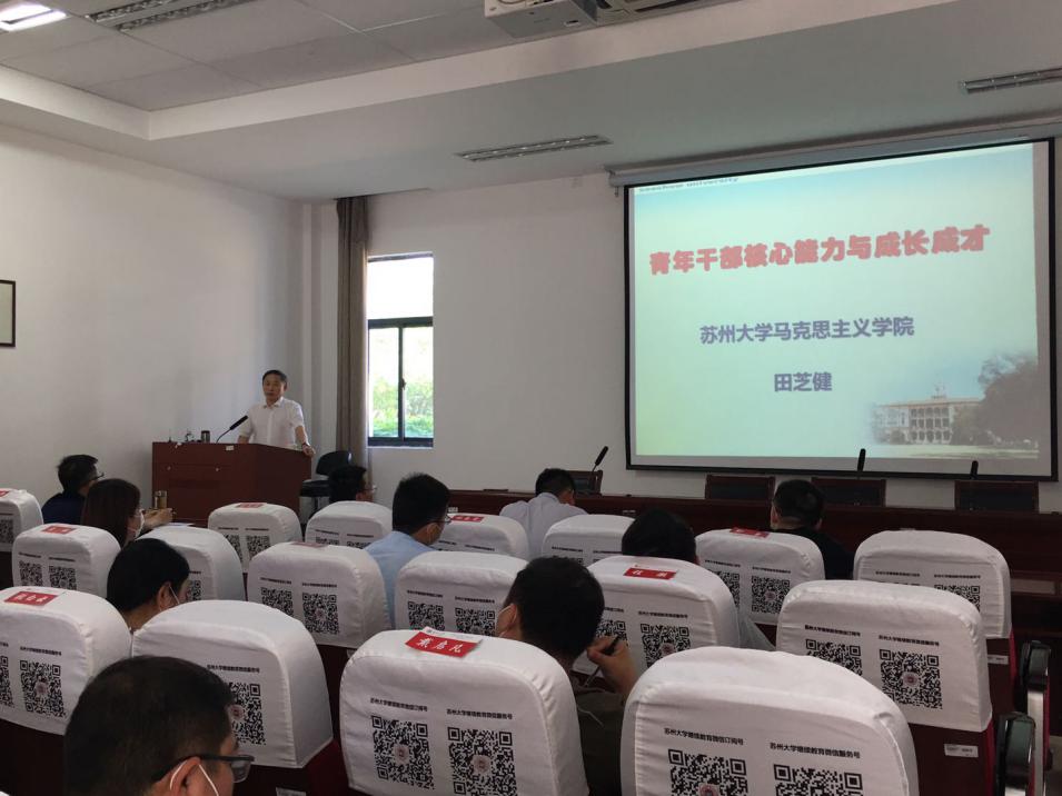 2020年6月1日,沭阳县委组织部刘方卫副部长和干训科张杰科长带领53名沭阳基层年度评选优秀的青年干部来到苏州进行综合能力提升学习,91自拍 田芝健院长和茆汉成副院长与刘部长就本次培训和后续的合作进行了沟通交流。6月2日上午,为期六天的沭阳县年轻干部示范培训班在91自拍 培训中心举行。