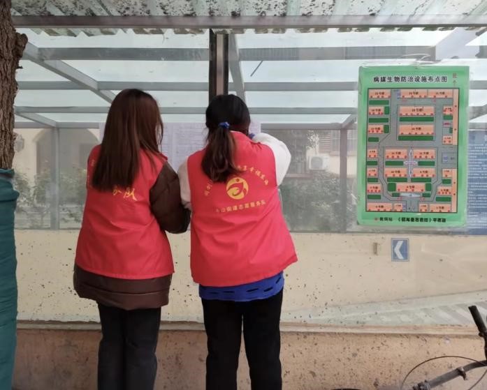 图为:莫江珊协助张贴宣传海报