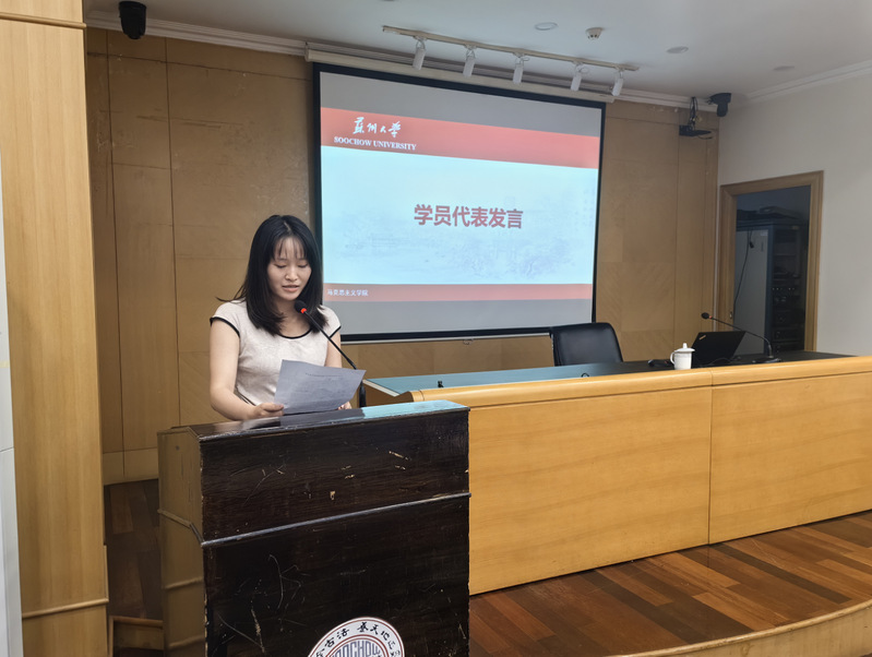 在结业典礼环节,2023级硕士研究生莫江姗和宋瑜静作为学员代表发言。莫江姗同学表示,通过本期培训班的学习,她坚定了入党的决心,认识到了中国共产党员的身份是一种责任、信仰和担当,今后会不断完善自己,为党的事业奉献青春力量。宋瑜静同学表示,在学习中,她深刻认识到了党的性质、宗旨和奋斗目标,进一步明晰了“奋斗”的含义,今后将在党组织的培养与关心下,不断完善自我、砥砺前行。