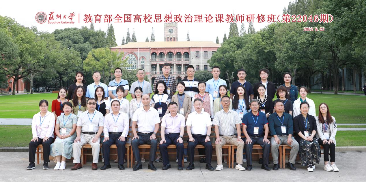 2022年9月22日,由教育部社科司主办、全国高校思想政治理论课教师研修基地(苏州大学)承办的教育部全国高校思想政治理论课教师研修班第22046期研修班正式开班,来自江苏省30所高校的35名思政课老师参与了此次研修,专题讲座通过“全国高校思想政治理论课教师网络集体备课平台”面向全国高校思政课教师进行全程现场直播。