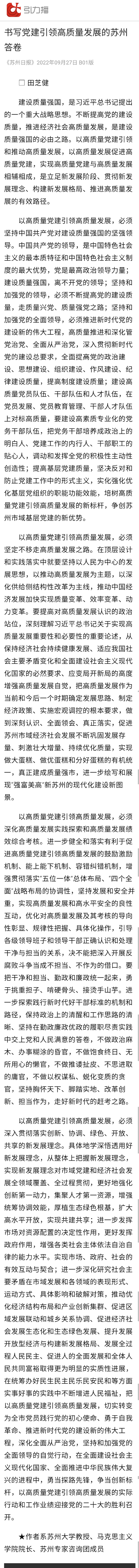 田芝健:书写党建引领高质量发展的苏州答卷