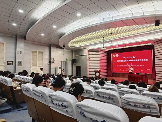 殷铭老师在讲座中指出,历史文化资源是一座城市的“原子核”和最亮眼的“城市名片”,历史城区保护和更新具有复杂多元性,需要多方力量系统化统筹、整合资源助力。他强调苏州古城保护工作责任重大,使命光荣,需要一代一代人久久为功、接续努力,青年一代是推动古城保护发展的动力源,鼓励同学们主动走近古城、融入古城、建设古城,用青春力量把历史文化遗产转化为苏州古城高质量发展的优势。