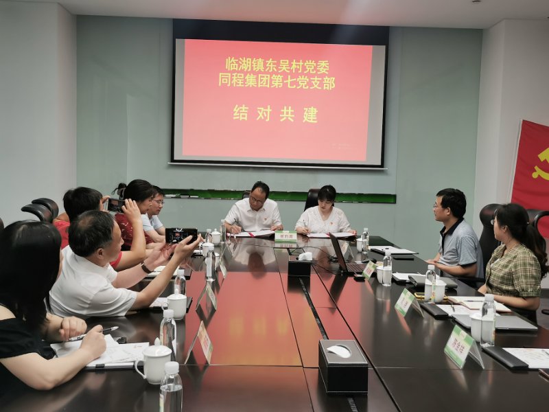 10:20,在同程大厦会议室,靳书记首先主持了全体党员重温入党誓词仪式,由概论党支部书记罗志勇领誓。在庄严而铿锵有力的宣誓中,与会党员再次重温了中国共产党的性质和宗旨,领悟了作为一名党员的初心和使命。随后,同程集团第七党支部和吴中区临湖镇东吴村党支部举行了党建结对共建签约仪式,大家表示祝贺。
