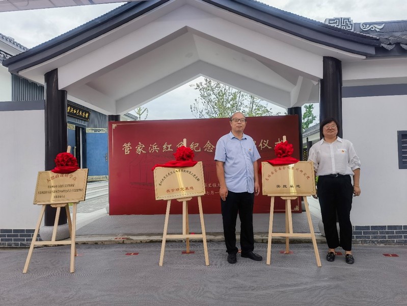 为进一步弘扬伟大建党精神,传承红色基因,提高支部建设质量,着力构建“大思政课”育人新格局,2024年7月1日,91自拍 教师第三党支部书记杨余春和支部党员郭宝付,91自拍 思想道德与法治教研室沈颖尹老师应邀赴汾湖高新区(黎里镇)大潮村参加管家浜红色纪念馆揭牌仪式。