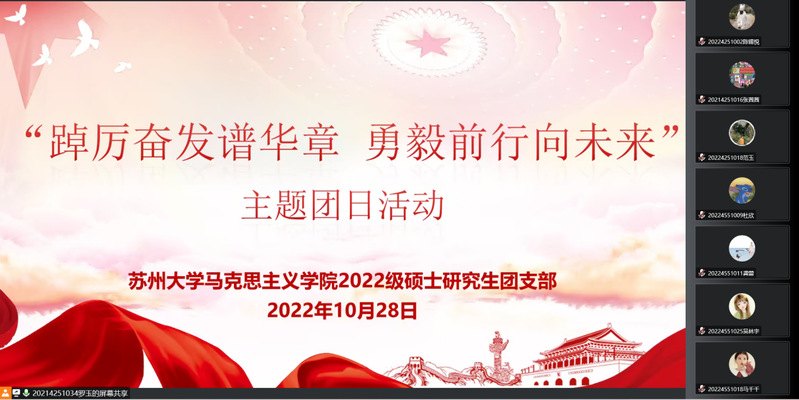 团委举办“踔厉奋发谱华章,勇毅前行向未来”主题团日活动,旨在引导马院团员青年深刻领悟党的二十大精神,以自强不息的意志和朝气蓬勃的姿态谱写新时代中国的绚丽青春篇章。本次活动由学院团委主办,2021级硕士研究生罗玉主持。