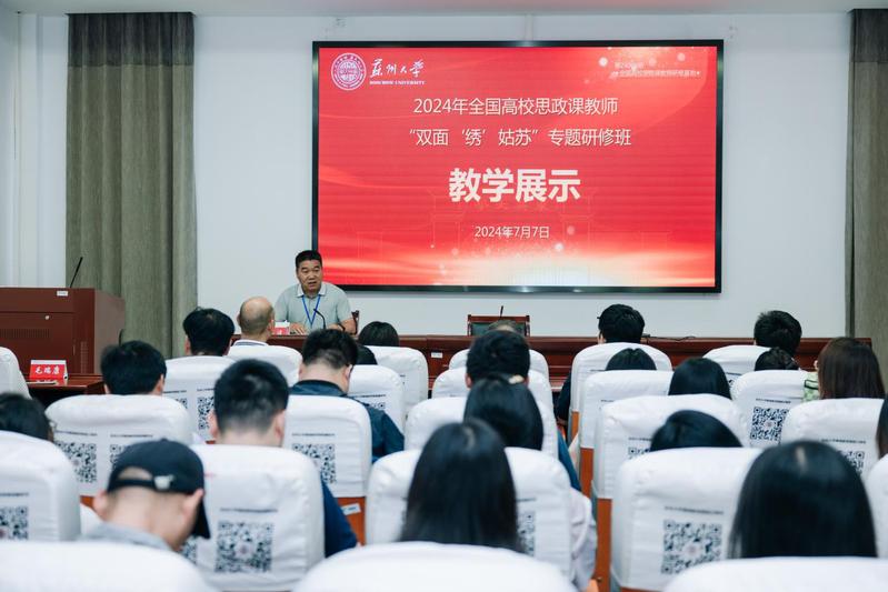 7月7日上午,“双面‘绣’姑苏”主题研修班教学展示活动在91自拍 继续教育学院培训中心105顺利进行。全国高校思政课名师工作室(91自拍 )负责人田芝健、91自拍 副院长朱蓉蓉、副院长茆汉成、院长助理孔川,教师代表臧政、王晓蕾、郑善文、戴梦石、毛瑞康以及全体参加研修的思政课教师出席。本次活动由河南工业大学91自拍 副院长丁建波主持。