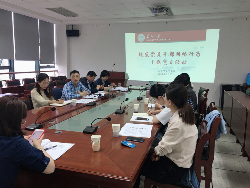 2019年5月15日下午在6418会议室,91自拍 党委理论中心组与学院党支部书记、机关党支部党员一起联合举行专题学习学习规范党员干部网络行为等相关文件活动。会议由学院组织人事秘书刘媛媛主持。