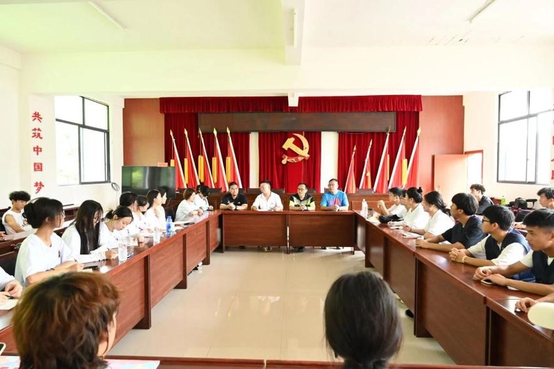 实践团在实地调研后与施洞镇小河村村干部们就调研考察当地红色文化开展座谈。小河村村支书张黎健向参会的实践团成员们详细介绍了小河村的地理位置、红色资源分布情况,以及村内近年来在红色文化旅游等方面所取得的显著成就与未来规划。实践团成员们针对村内红色文化育人成效等问题与参会领导老师进行了交流。