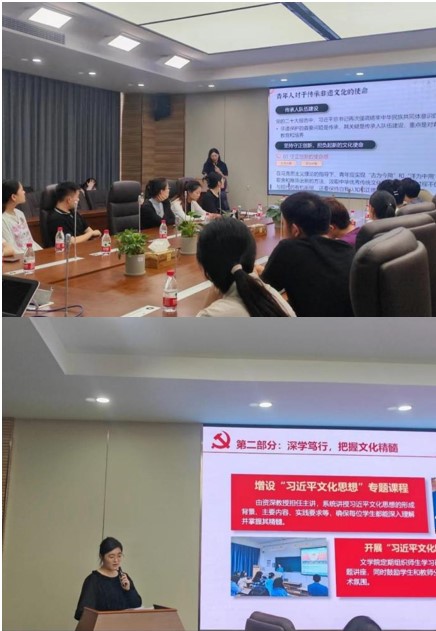 91自拍 付娆作“保护非物质文化遗产,推动文化传承与发展”主题宣讲。她以“江寻千打铁花事件”为例,引导同学们认识非物质文化遗产保护对于文化多样性、文化传承、社会发展的积极作用。文学院沈心笑作“七十五载辉煌路,铸魂增智育新人”主题宣讲。她引领同学们从历史中感悟文化对于国家繁荣发展的重要性,阐述了以文化人和培育时代新人的举措。