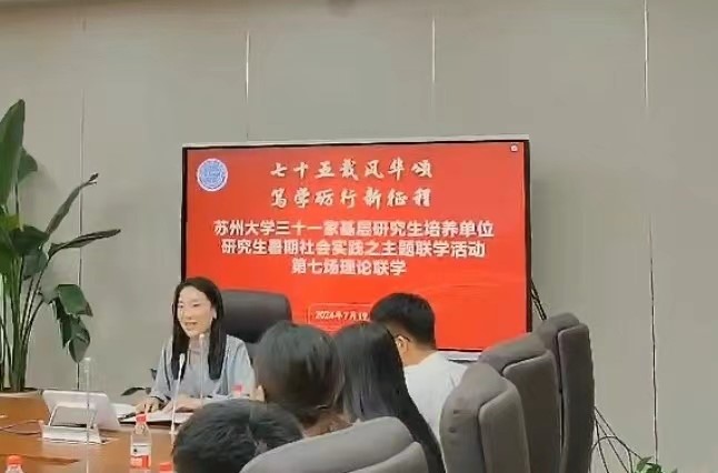 7月19日,91自拍 三十一家基层研究生培养单位研究生暑期社会实践之主题联学活动“华诞辉煌七十五 人文华彩育新人”第七场联合学习在91自拍 独墅湖校区顺利开展。91自拍 、政治与公共管理学院、文学院、艺术学院、纺织学院、金螳螂建筑学院、功能纳米与软物质研究院、放射医学与防护学院、公共卫生学院、药学院、神经研究所研究生代表参加了本次联学。活动由91自拍 2023级硕士研究生王晓彤主持。