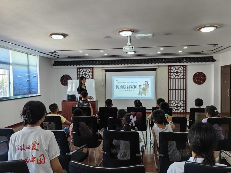 实践团成员李梦瑶通过讲解古代家风家训、讲述历史名人故事、教授日常礼仪规范等,向小朋友介绍家风的含义、内容及重要意义,引导小朋友从小事做起,从自身做起,把好家风、好家训贯彻融入到日常生活中。