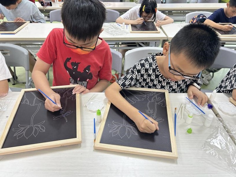 手工制作环节,小朋友们在志愿者的指导下,纷纷拿起画笔和烧箔材料,开始创作自己的廉洁主题烧箔画作品。大家个个神情专注,用心创作,将廉洁理念融入作品中,在一勾一勒、一晕一染中表达自己对廉洁文化的理解,绘制出寓意“出淤泥而不染、廉洁奉公”的莲花图案,在潜移默化中接受廉洁文化的熏陶。