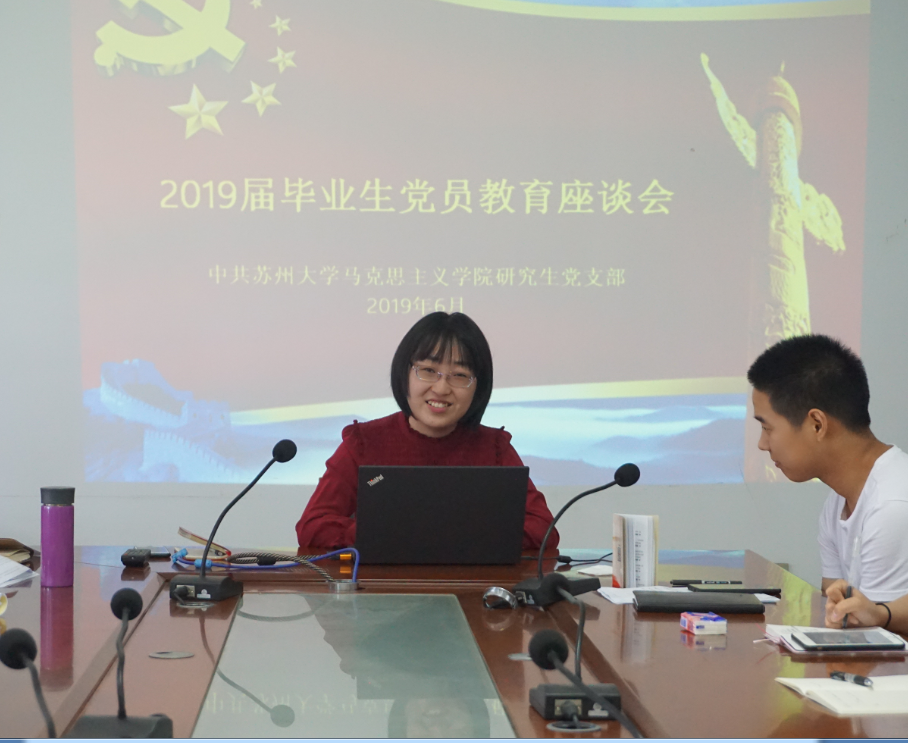 为深入学习宣传贯彻习近平新时代中国特色社会主义思想和党的十九大精神,切实发挥毕业生党员的先锋模范作用,确保文明离校工作顺利开展。2019年6月11日上午,91自拍 研究生党支部在91自拍 独墅湖校区606号楼6418会议室召开了毕业生党员教育座谈会。91自拍 研究生党支部党员同志参加了本次活动,本次会议由91自拍 组织人事秘书刘媛媛老师主持。