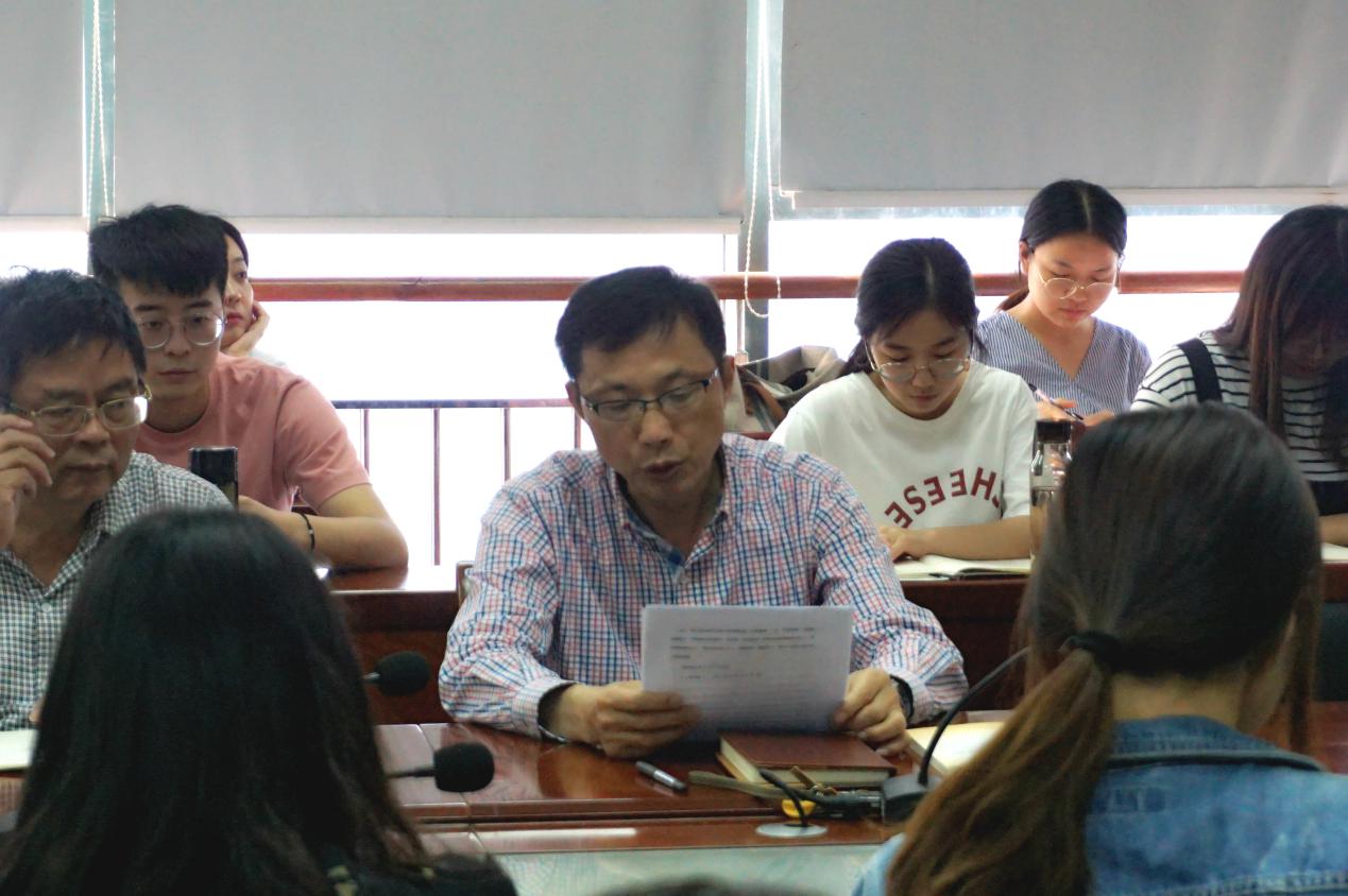 座谈会上,陆树程教授在发言中指出,习近平新时代中国特色社会主义思想是党和国家必须长期坚持的指导思想,这是《纲要》的主题。因此,《纲要》对宣传习近平新时代中国特色社会主义思想将会起到极其重要的作用。陆教授指出,今天他在专业外语学习课上,他要求同学们用英文来背诵“八个明确”和“十四个坚持”。所以从这个意义上来说,《纲要》的出版和学习,不仅对全党和全国人民有重要意义,而且对世界各国都具有重要意义。