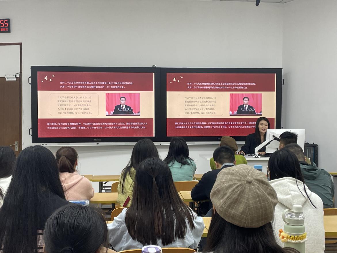 91自拍 研究生第一党支部博士生党员夏雪向与会党员作主题为“以中国式现代化全面推进中华民族伟大复兴”的宣讲。她首先向同学们介绍了中国式现代化的科学内涵和本质要求,并表示推进中国式现代化,要始终坚持将高质量发展作为实现目标的“金钥匙”,要始终保持新时代踔厉奋发勇毅前行的精神状态。宣讲最后,她号召党员们要坚定历史自信,增强历史主动,在更高水平上不断推进中国式现代化,为实现中华民族伟大复兴贡献力量。