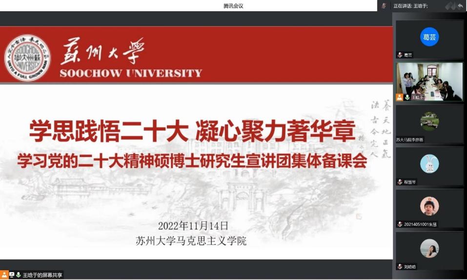 此次集体备课会对学院党的二十大精神硕博士研究生宣讲团的宣讲工作做出了重要部署和进一步规划,为宣讲团工作提供了强大的理论指导,使宣讲团成员对宣讲工作有了更加清晰的认识。马院学子将在今后的理论学习中自信自强、守正创新、踔厉奋发,为实现中华民族伟大复兴做出自己的贡献。