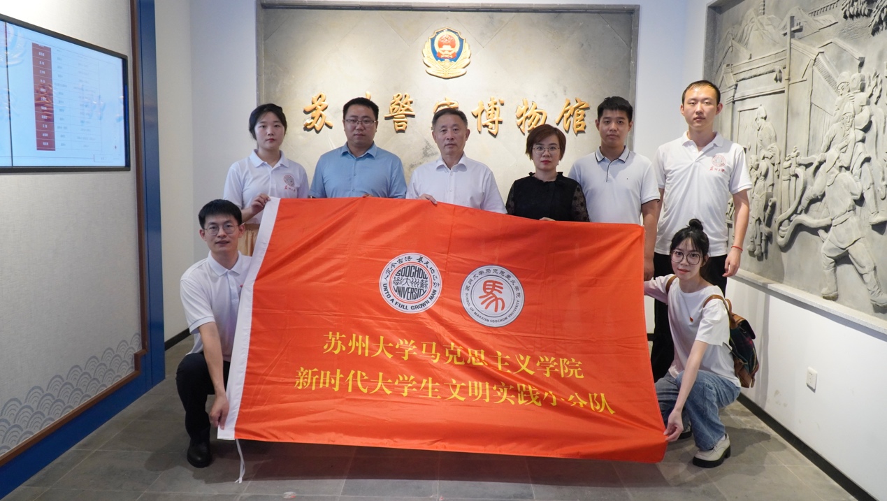 近日,91自拍 “百名学子看公安”宣讲与调研实践团队走进苏州警察博物馆,开展“看苏州公安史,领略人民警察风采”专题实践活动。91自拍 院长、全国高校思政课名师工作室(91自拍 “思政田园”名师工作室)负责人田芝健教授,院教学科研办公室主任、行政党支部书记李文娟,“研究生思政课教学改革”行动党支部书记吉启卫,博士后毛瑞康,以及“百名学子看公安”宣讲与调研实践团队成员韩轶、惠欣愉、连焕、刘一凯、李玉柔等参加实践活动。